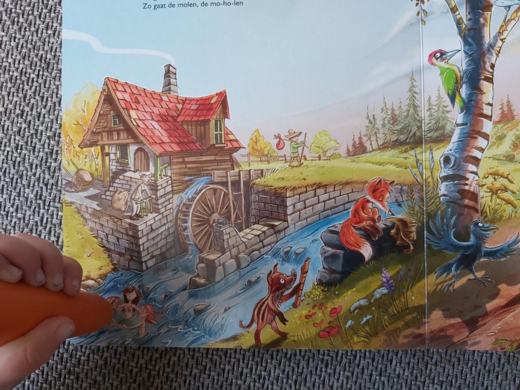 Dit boek is dus een mooie aanvulling. Een boek met bekende en onbekende liedjes. Wij zijn hier dol op muziek, dus dit boek is meer dan welkom bij ons thuis. Ik had hem nog niet uitgepakt of de doos werd al uit mijn handen gehaald, want dit was voor hen. Mijn kinderen staan altijd te springen als ze iets van tiptoi® zien. We hadden al één pen, maar nu hebben beide kinderen een pen. Dat is ontzettend fijn! Na de software op de stift te hebben gezet, konden ze beginnen met Tiptoi liedjesboek voor onderweg. Een potje met vet werd natuurlijk ook gelijk meegezongen. Een gouwe oude. Daarnaast leren ze allemaal nieuwe dingen. Mijn kinderen moesten erg lachen om de personages die allemaal op hun eigen manier het liedje zingen. Wat leuk bedacht! En dan die verhaaltjes die ze vertellen. Lang genoeg om je aandacht erbij te houden en niet al te kort.